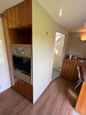 This Quad Greenroom Truck is 3 of 3 Greenroom Trucks. It is 10 metres long and can be hired individually or with a Double Greenroom Trailer. It is purpose built with two identical rooms, which are fitted out with the best quality equipment, which makes it modern and comfortable. It is maintained to the highest standards, and meets all safety requirements.